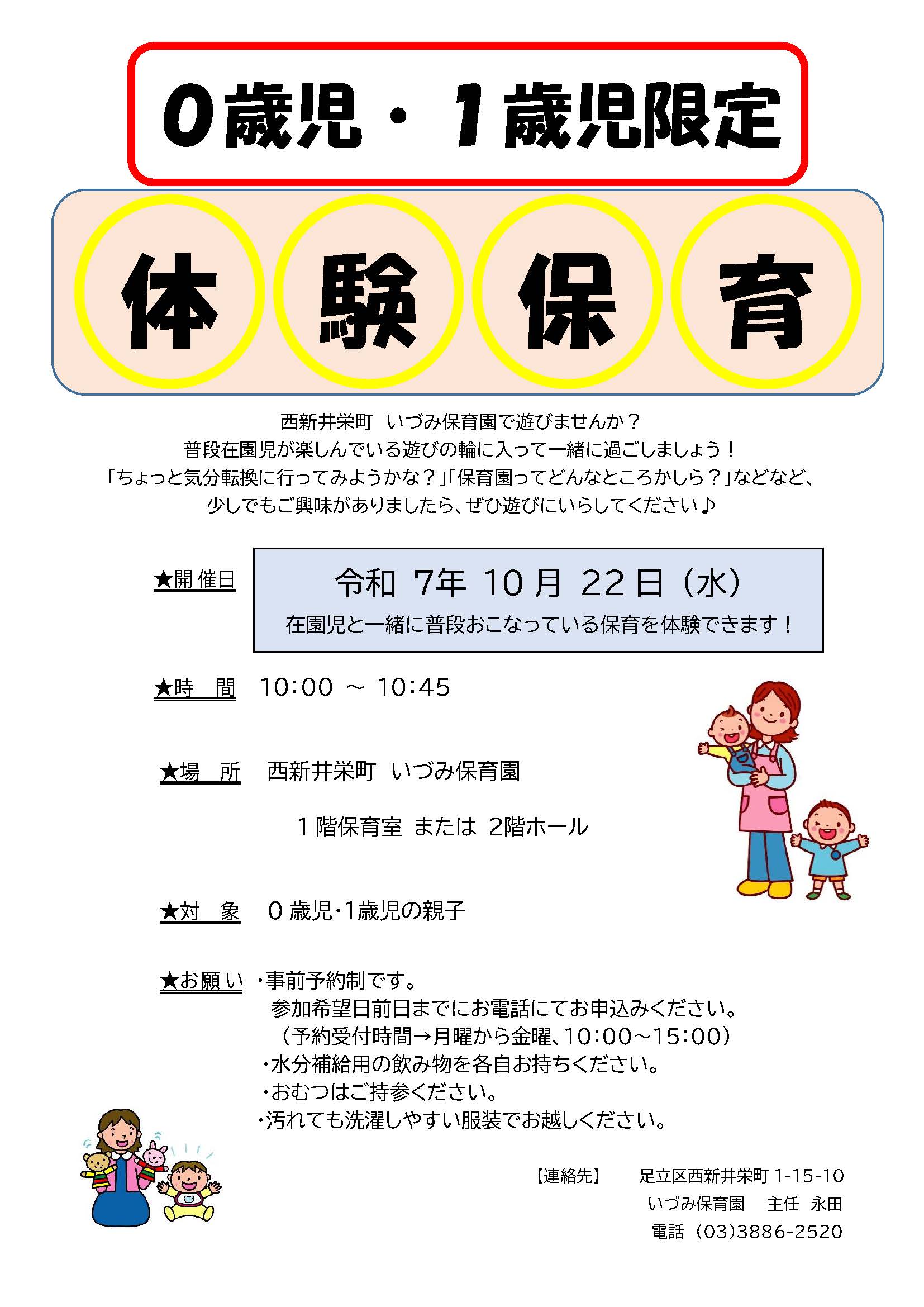 お知らせ 0歳児・1歳児限定 体験保育のご案内(10月) 2025.10.02 Post Share Hatena Pocket RSS feedly Pin it この記事のタイトルとURLをコピーする 法人からのお知らせ 前の記事 令和7年度 求人募集のお知らせ 次の記事